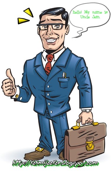 Satu hari ni, setelah pak Jem berumur lingkungan 60an, dia pon p lepak kt warung pak potat.. seperti kebiasaannye, keje pak jem ni nganjing je la kt customer2 warung tuh.. tuptaptuptap, die jupe ngan sorang stranger nih.. kebetulan ade air teh tarik atas meja mamat tuh, pak jem pon ape lagi, die bahang a air teh tuhh... tiba2, si mamat ni menangis dgn teresak-esak... pak jem terkejut gak la.. then die pon cakap la kat mamat tuh...
