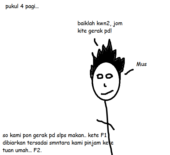 -beki kete F1 mengambil mase 3 jam di bengkel :( siap kol 5
